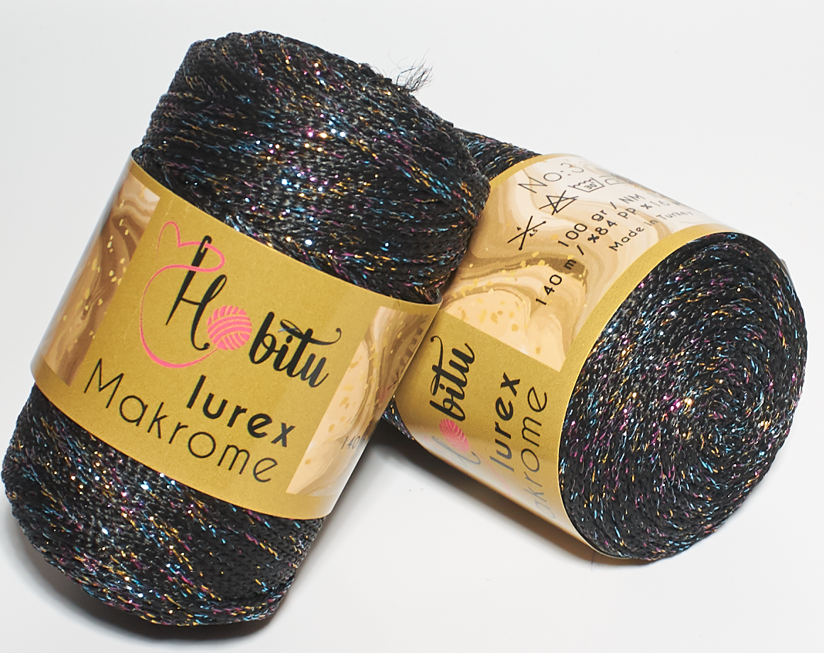 Пряжа Macrome Lurex Hobitu-270-4 чорний з кольоровим блиском